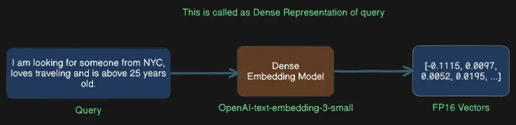 Dense Representation Creates vectors for the complete query, overlooking the most important parts of a query and that is keywords (e.g., NYC, travel, 25 years).